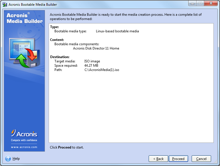 پس از انتخاب یکی از گزینه ها و زدن next، در پنجره بعد با زدن گزینه ی Proceed، نرم افزار با قابلیت بوت ساخته می شود.