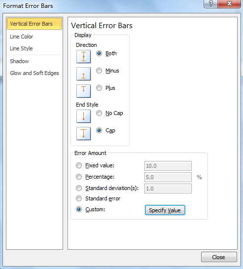 در قسمت بالای این پنجره یعنی Display میتوانید مشخص کنید که آیا نوار خطا دارای دو جهت باشد یا تک جهته به سمت منفی یا مثبت ترسیم شود.
