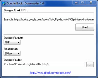 Google Books Downloader نرم افزاری برای دانلود کتاب از گوگل بوک است. برای اینکار تنها کافیست که لینک کتاب مورد نظر خود (لینک موجود در نوار آدرس مرورگر، مثل http://books.google.com/books?id=7P_OlHoaReIC) را در برنامه وارد کنید و فرمت (Pdf, Jpeg و Png) و رزلوشن کتاب را انتخاب نمایید. بعد از کلیک روی دکمه Start، دانلود کتاب مورد نظرتان شروع میشود.