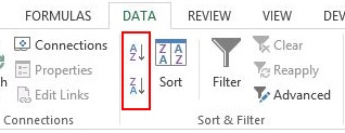 از منوی Data در قسمت Sort & Filter کلیک کنید.