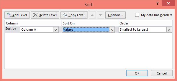 اگر لیست شما دارای یک سطر عنوان باشد که هنگام مرتب سازی دیگر سطرها باید سر جایش باقی بماند، اکسل معمولاً این مطلب را تشخیص میدهد و پس از مرتب کردن سطر عنوان را جابجا نمیکند. چنانچه اکسل به هر دلیلی نتوانست سطر عنوان را تشخیص دهد میتوانید خودتان گزینه My data has headers را انتخاب نمایید.