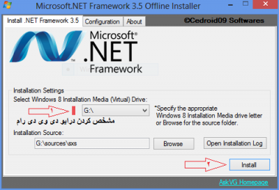 این پیغام نشان میدهد برای نصب نرمافزارتان رایانهی شما به NetFramework 3.5 نیاز دارد. برنامه NetFramework 3.5 در دیویدی ویندوز ۸ وجود دارد اما متاسفانه همراه ویندوز نصب یا فعال نمیشود. برای اینکار ابتدا نرم افزار رایگان Microsoft .NET Framework 3.5 Offline Installer را از اینجا دانلود کنید. (حجم:350 کلیوبایت)