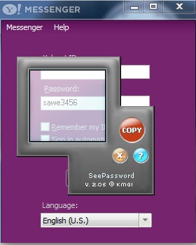 نرم افزار See Password قادر است تا رمزهایی که در برنامههای مختلف ویندوز مانند یاهو مسنجر، کانکشنهای اتصال به اینترنت و یا حتی رمزهایی که در مرورگرها به شکل ستاره ذخیره شدهاند را شناسایی و آنها را به شما نشان دهد. برای استفاده از این نرم افزار کافیست بعد از نصب و اجرا، پنجره مربع شکل برنامه را روی محل مورد نظر ببرید و رمز را مشاهده نمایید.