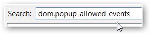 ۳- در فیلد جستجو عبارت dom.popup_allowed_events را بنویسید.
