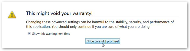 سپس با پیغام زیر مواجه میشوید که کافی است روی گزینهی I'll be carfull … کلیک نمایید.