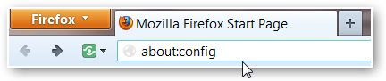 ۱- در قسمت نوار آدرس مرورگر عبارت about:config را تایپ کنید و سپس enter را بزنید.