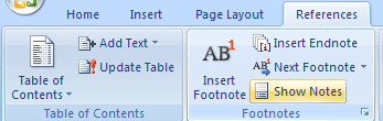 ۲- سپس به تب References رفته و از قسمت Footnotes بر روی Show Notes کلیک کنید.